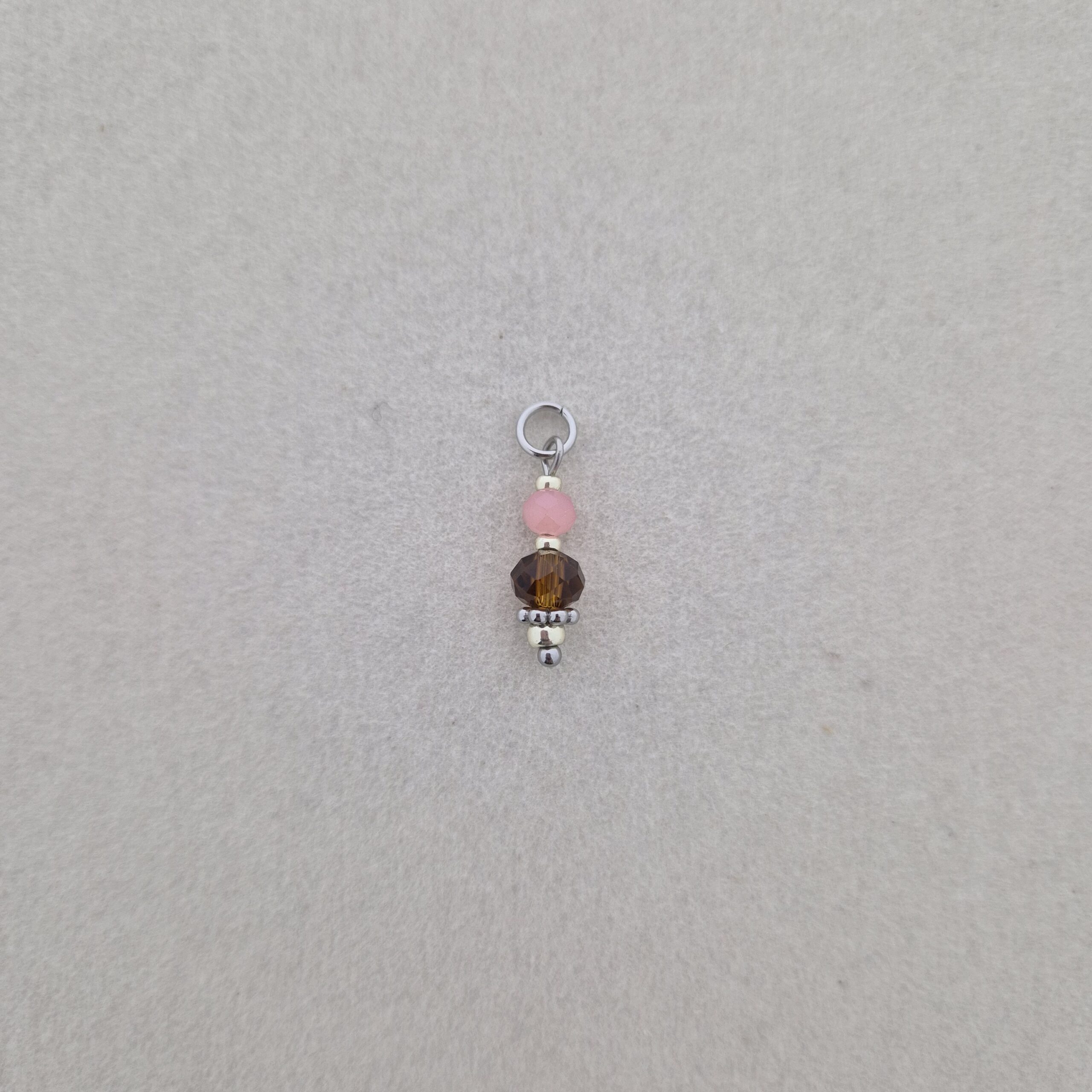Bedel met een bruine en roze facetkraal. Deze bedel is gemaakt van Stainless Steel.